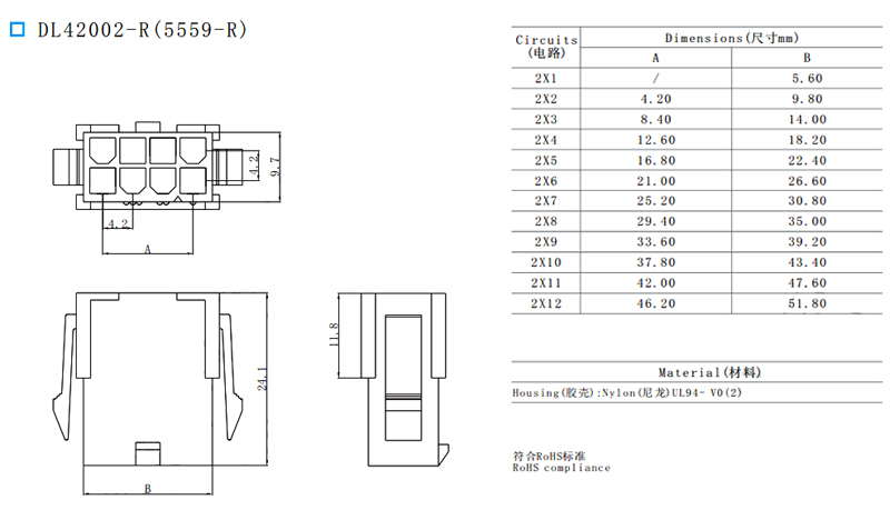 5559單排)-4.2mm-1*2A 公頭 2P (1*2)