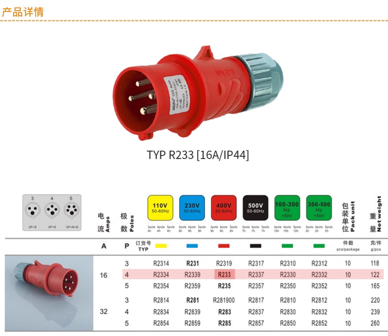 4P/16A 400VAC 公插頭