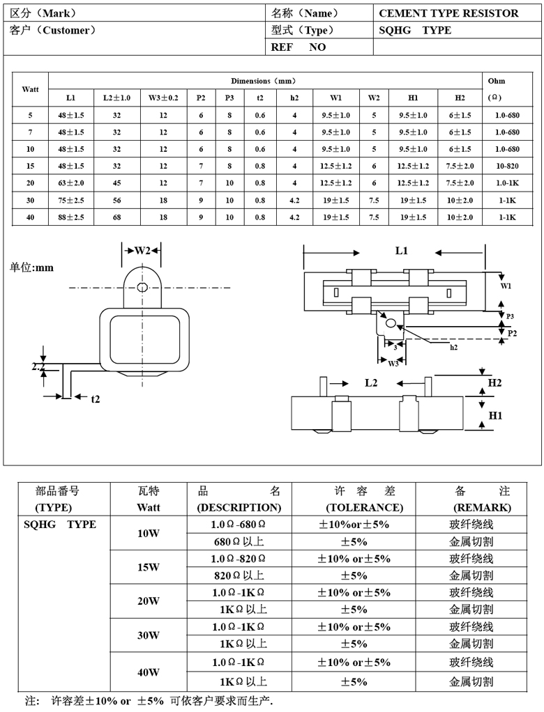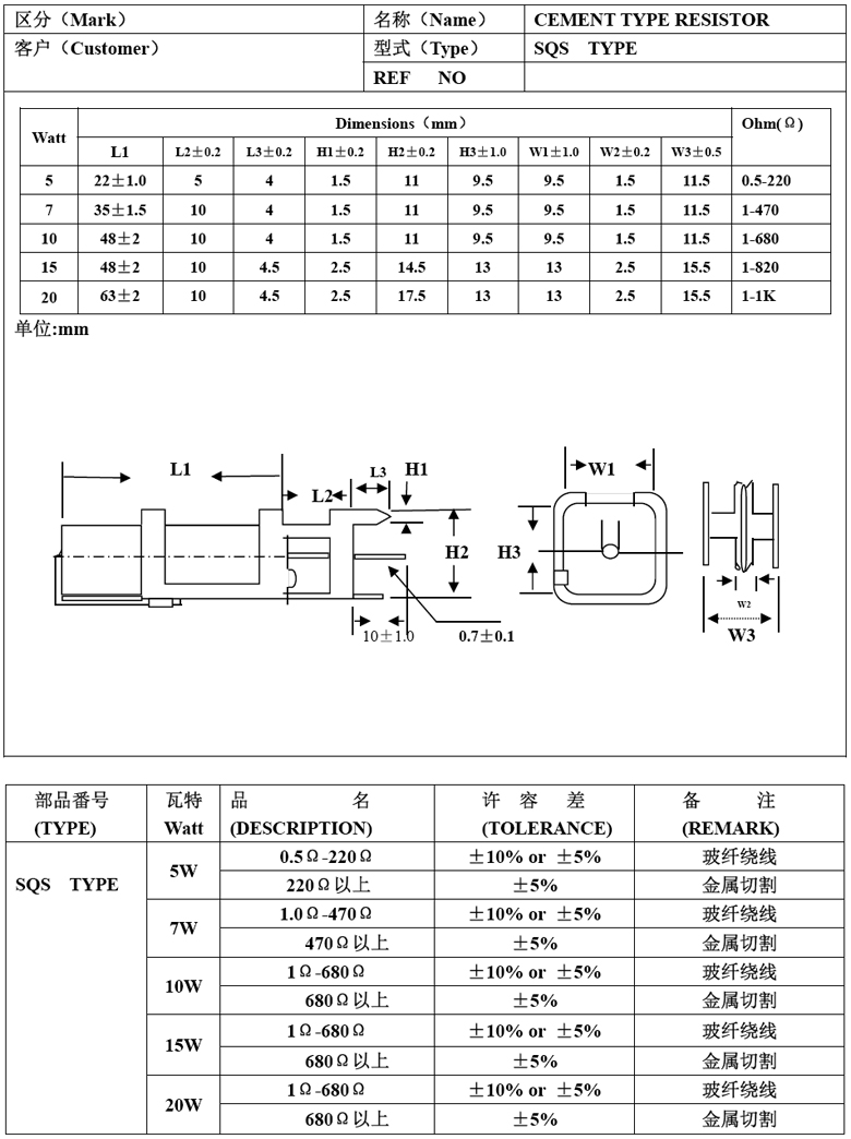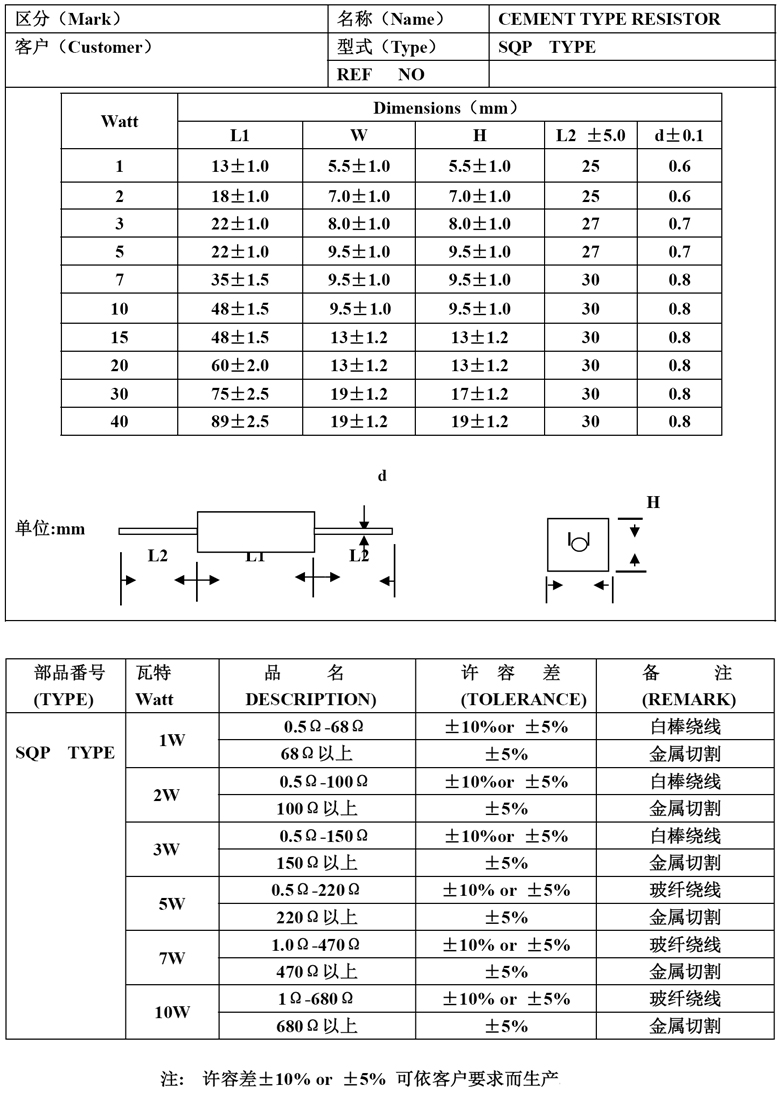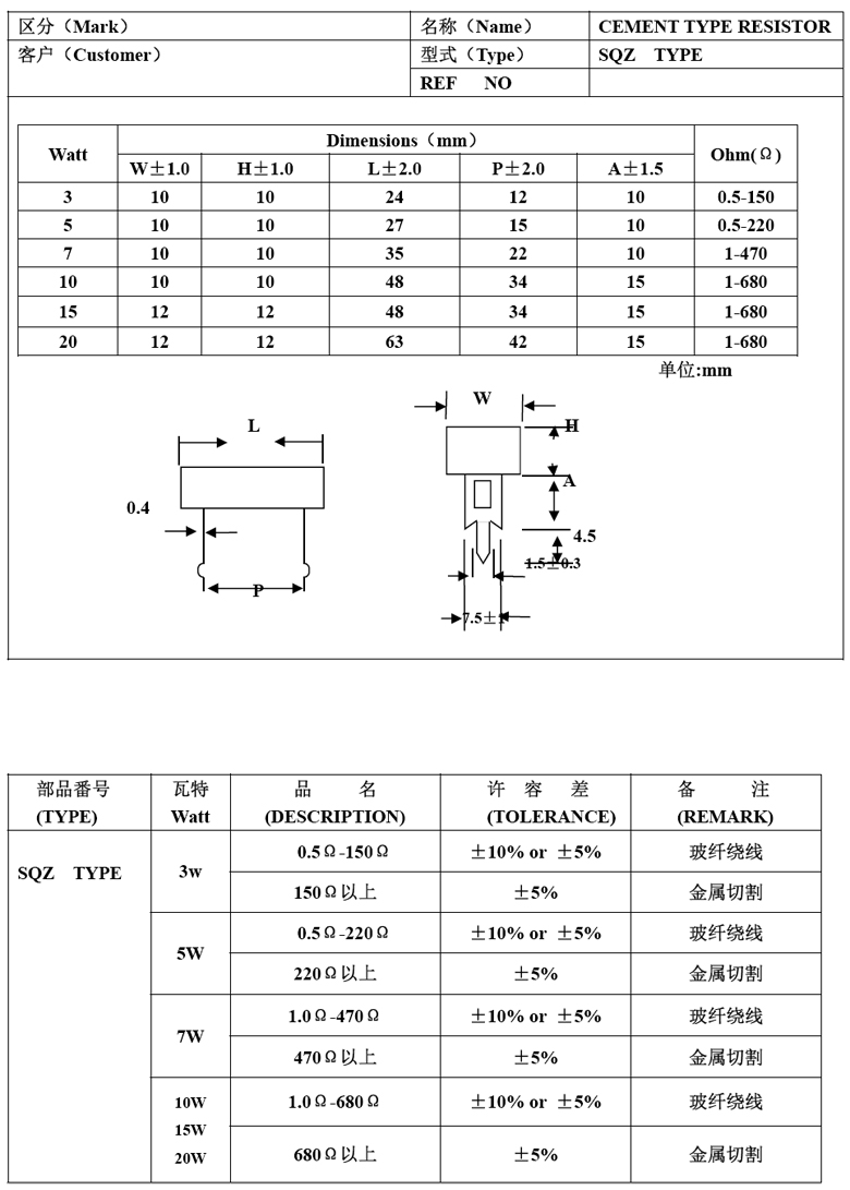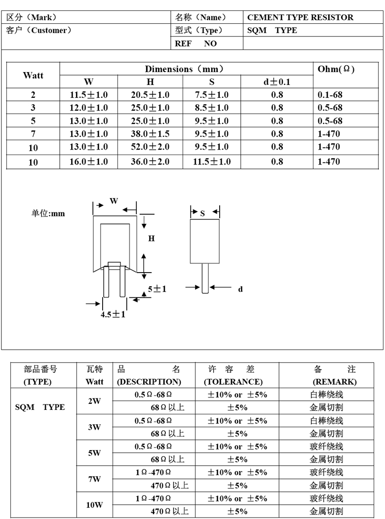 SQM 立式水泥電阻 5W 0.33ohm ±5%