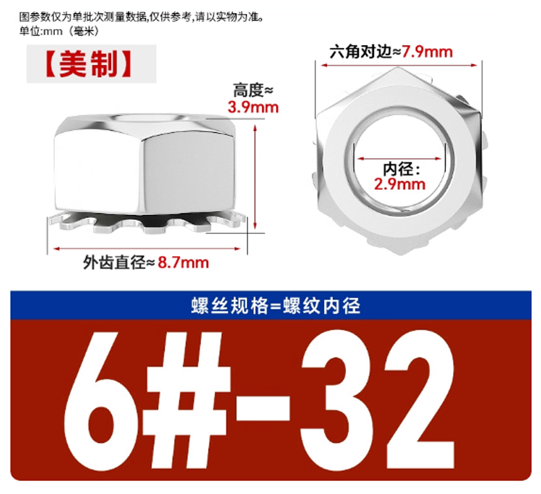 304-美制K型帶齒螺母-6#-32牙