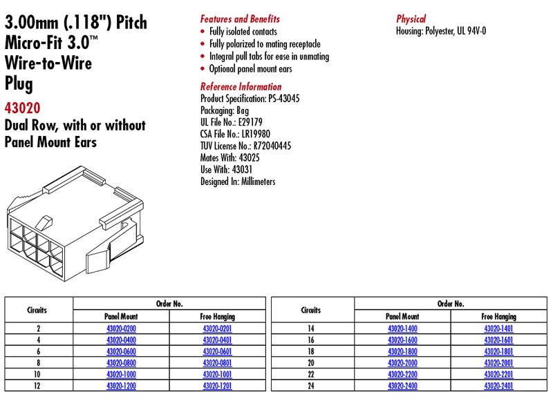 MOLEX Micro-Fit 3.0-- 3.0mm-6P (公頭)