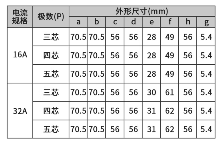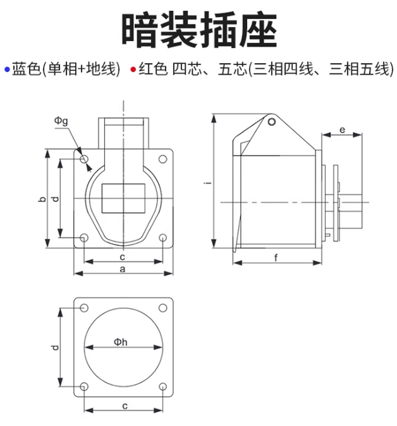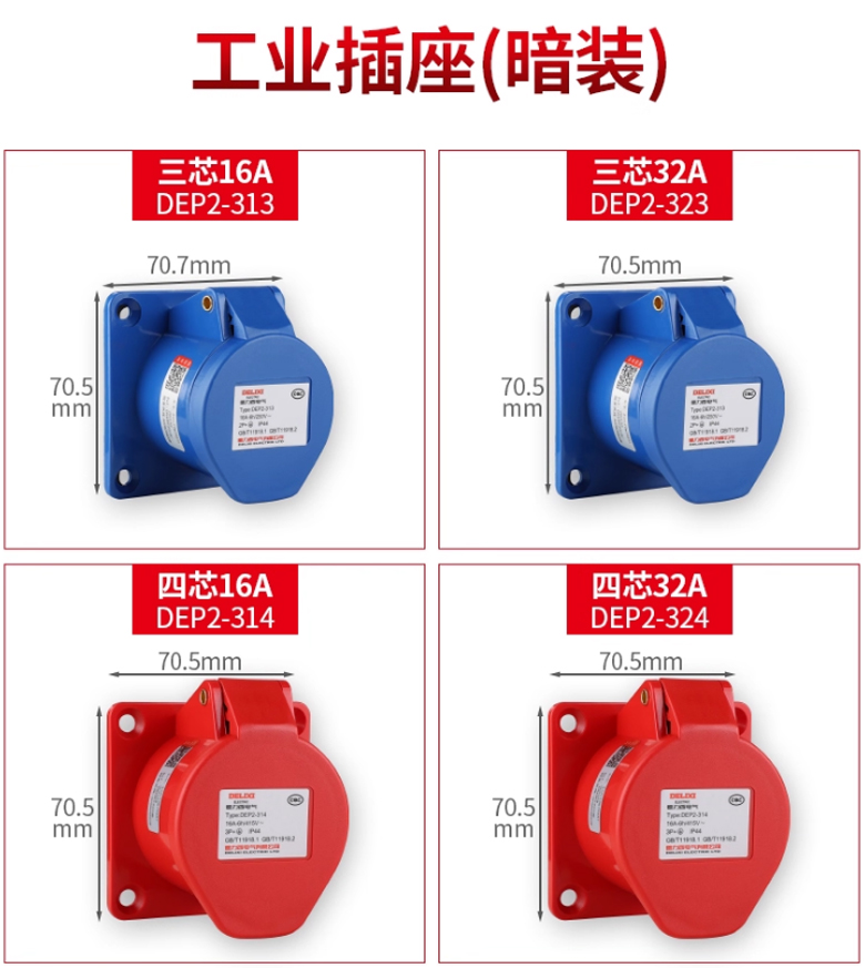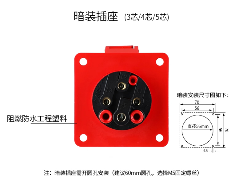 IP44工業插座連接器-3芯32A/250V 暗裝