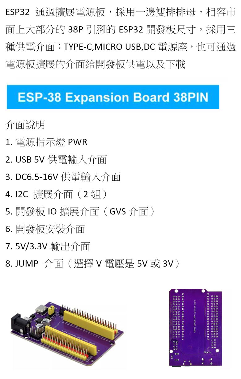 ESP32S 38pin 紫色擴展板