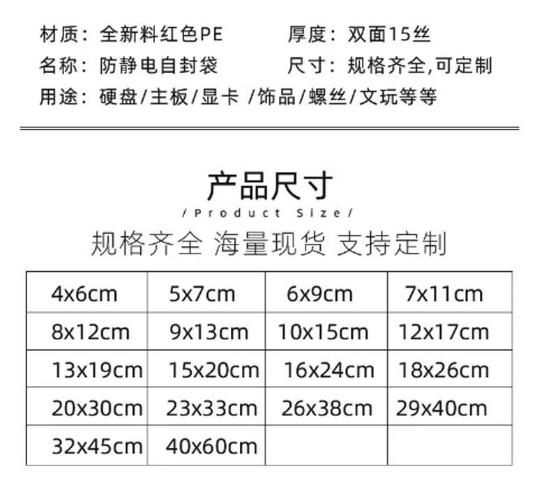 靜電隔離袋-180*260*0.15mm 單層厚度0.075MM 紅色