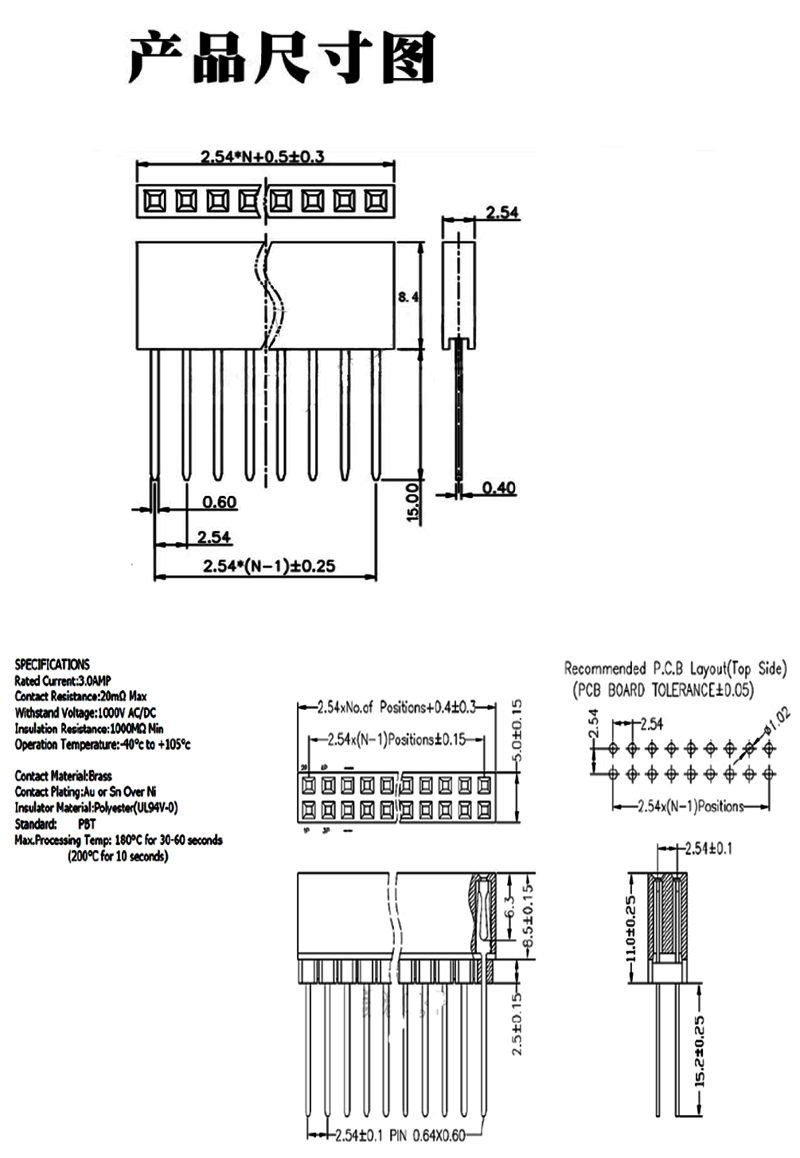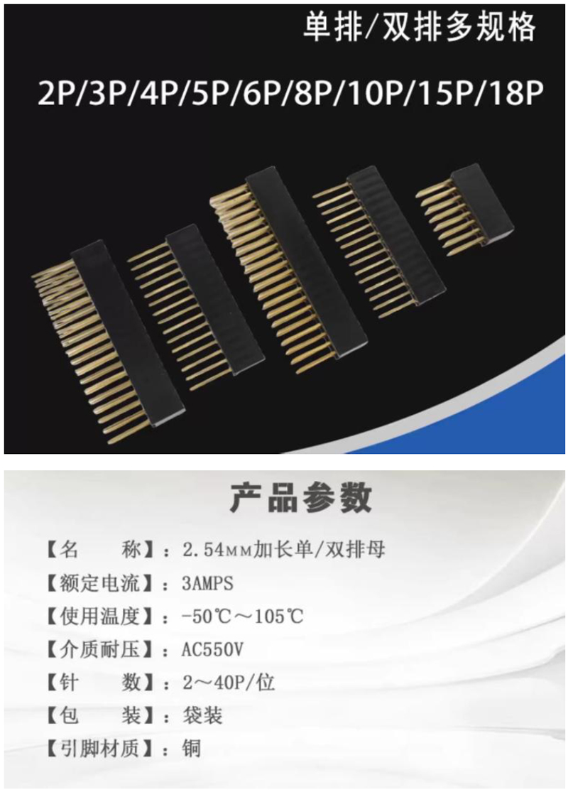 1*4排針母座 黑體8.4mm P:2.54mm