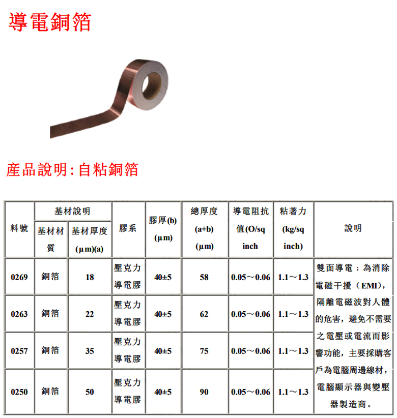 銅箔膠帶-0250-0.08*30mm*50M