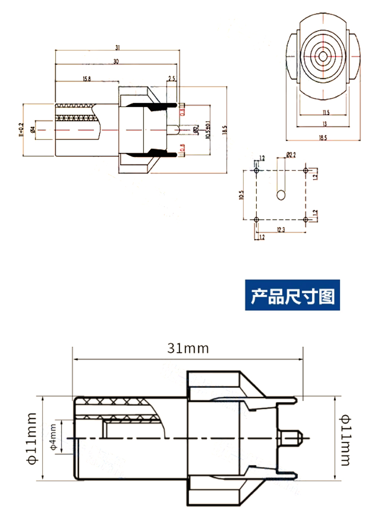 PCB四腳固定面板立式香蕉插座