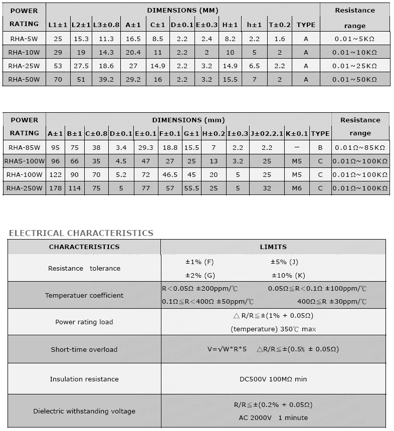 | 100y Part No. | 品號 | 電阻值(Ω) | 誤差值 | W |
