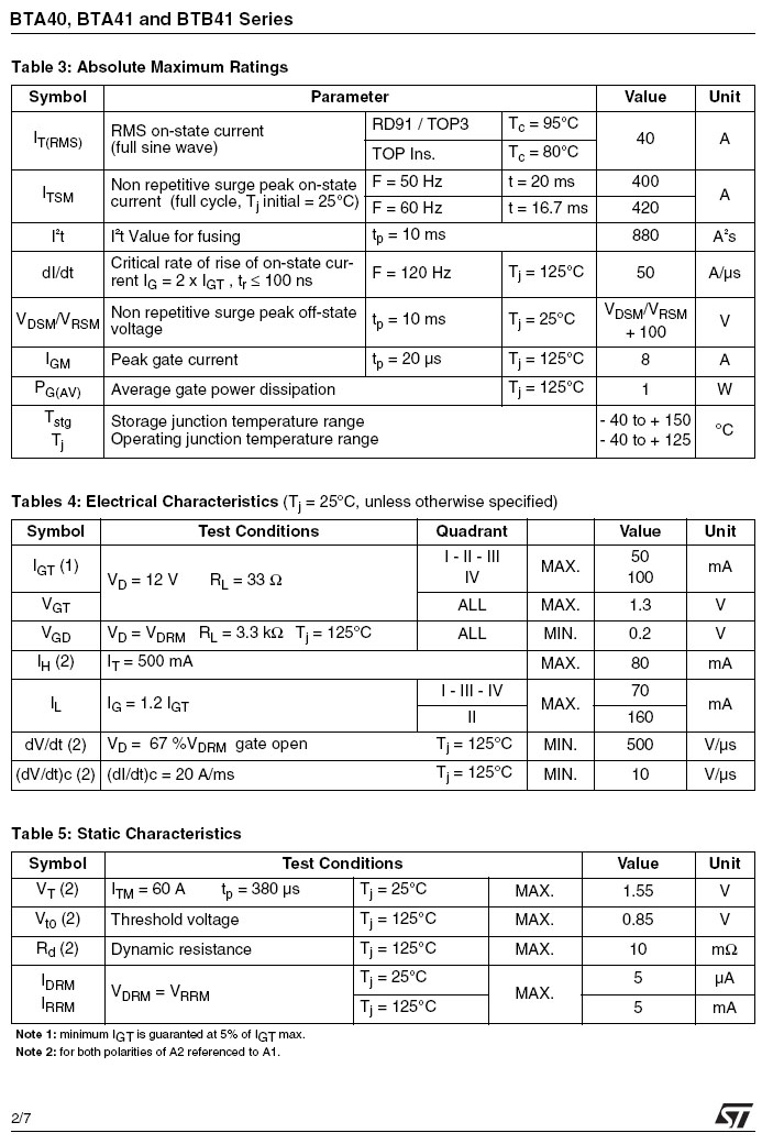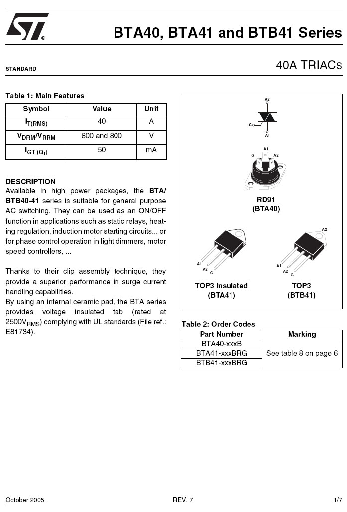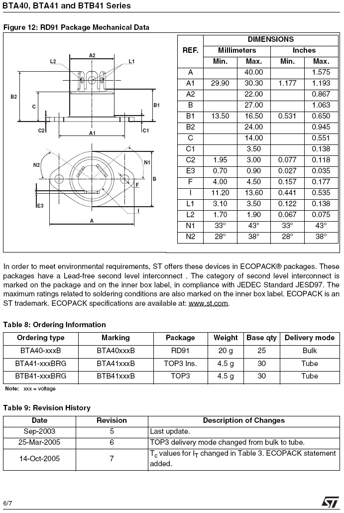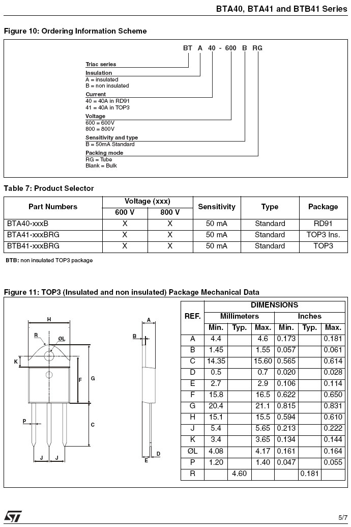 3P/RD91 (ROHS) TRIAC 700V/40A