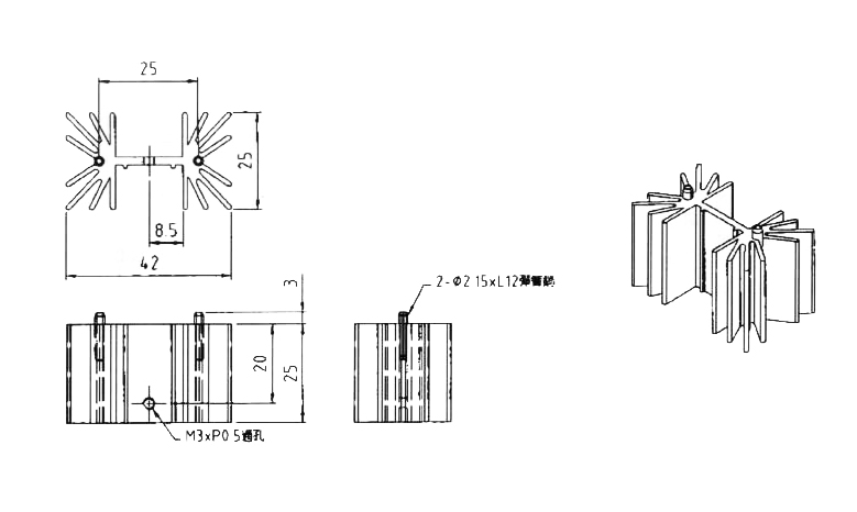 TO-3P散熱片 42W*25H*25Dmm(ROHS)