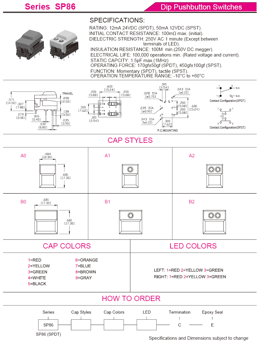 | 18091 | YSP86-A2-332C02 | 綠色小蓋帶綠、黃LED | 8P |