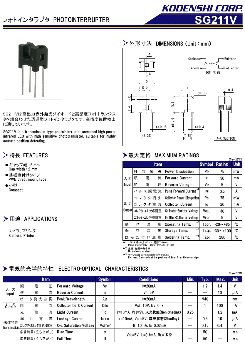 KODENSHI_SG-211V   Photointerrupter