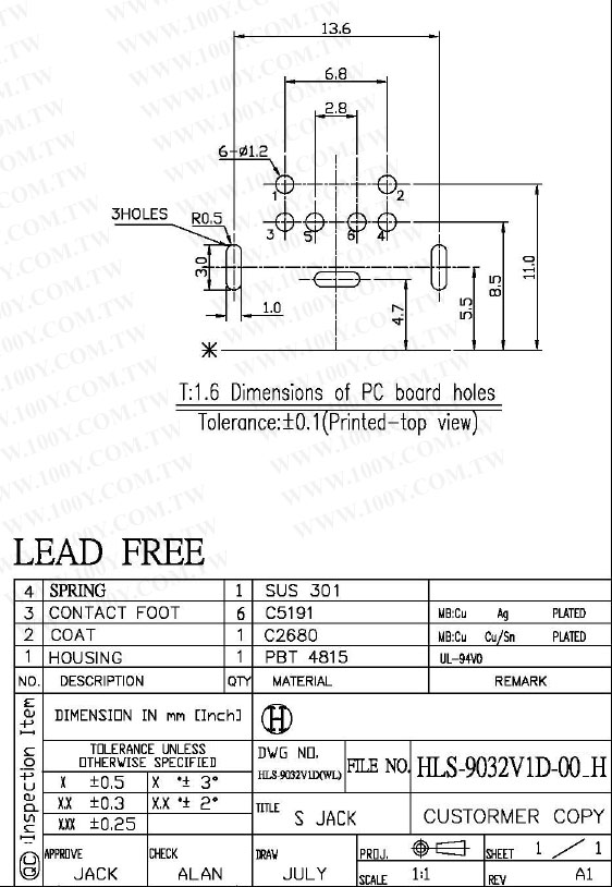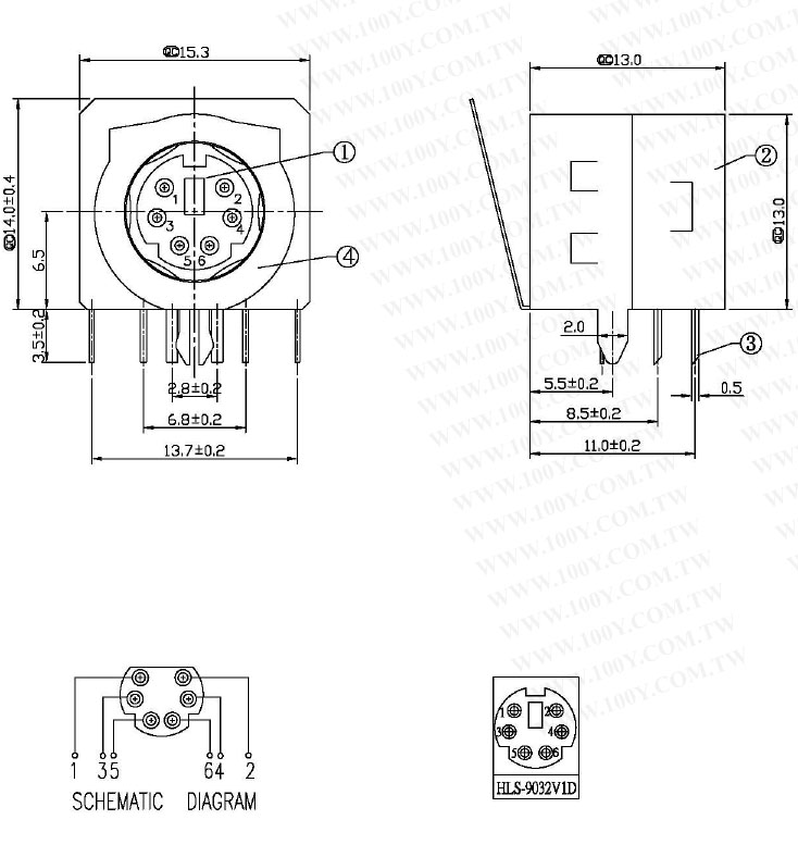 Mini-DIN母座 6Pin 紫色【ROHS】