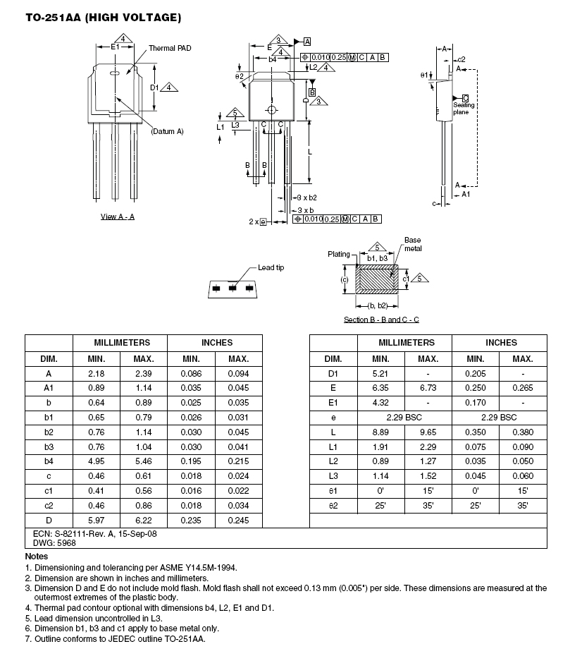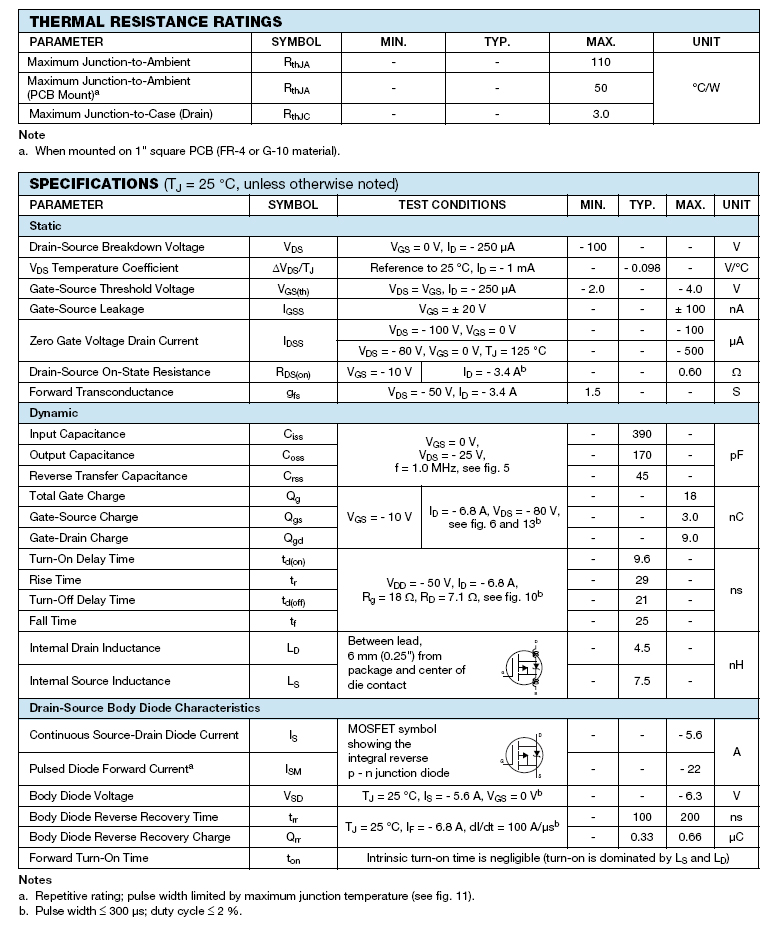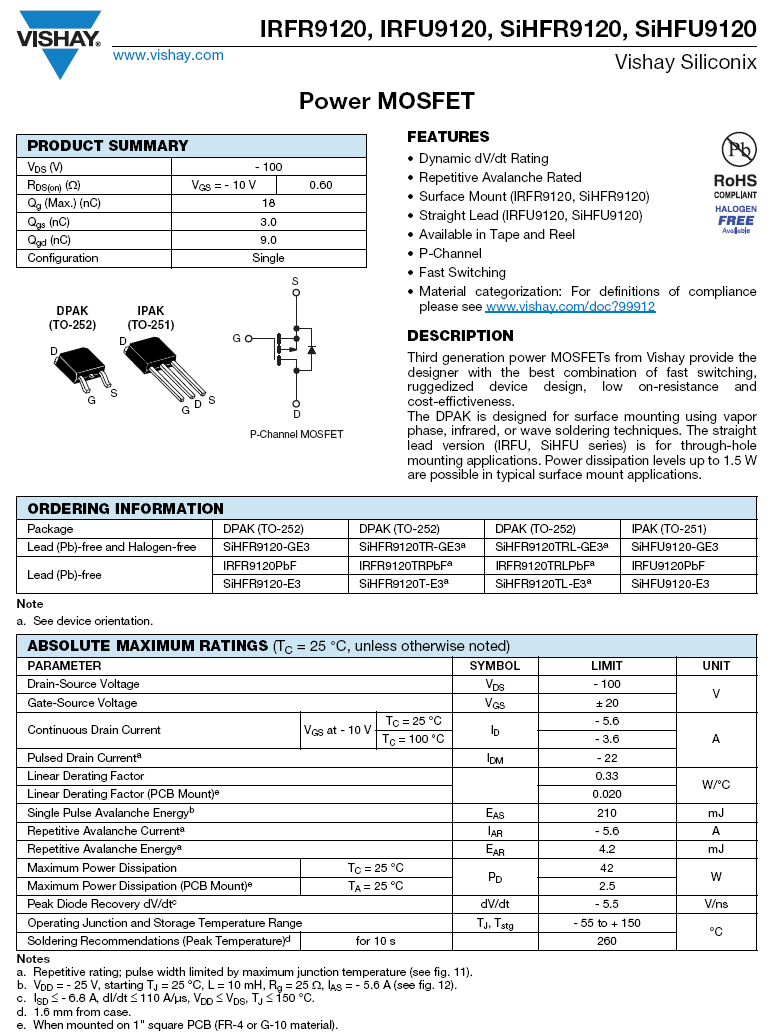 TO-252 (ROHS) 20V -100V P-CH FET 480mOhms 18nC