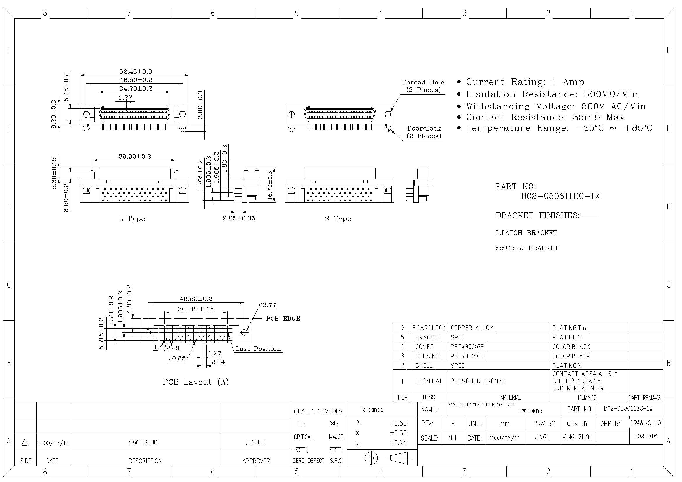 SCSI 50P MDR 母座 孔式 DB型 90度 彎腳