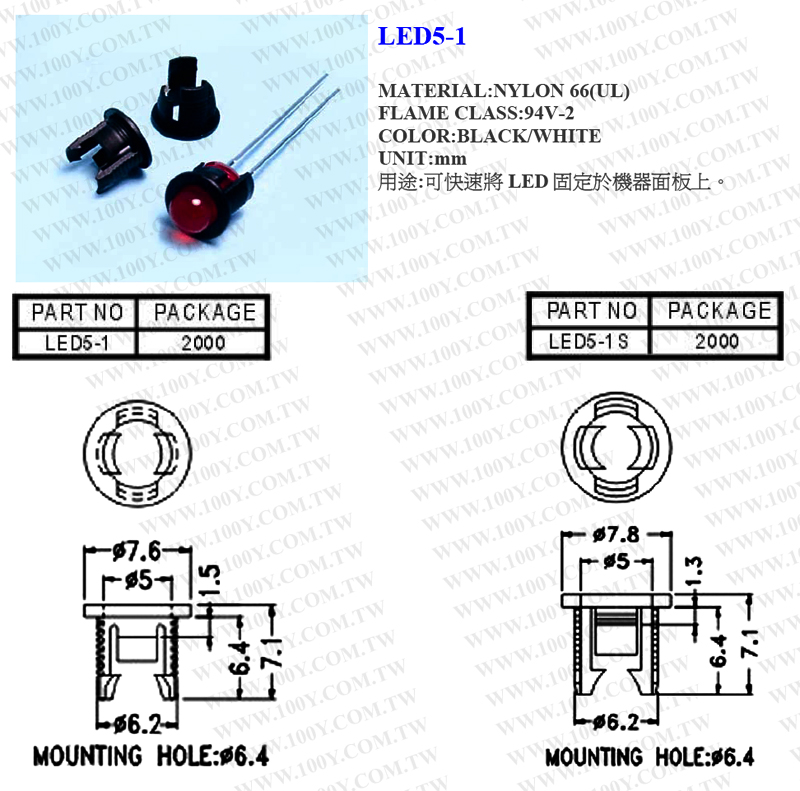 Φ5 LED燈座/燈套 (黑色)