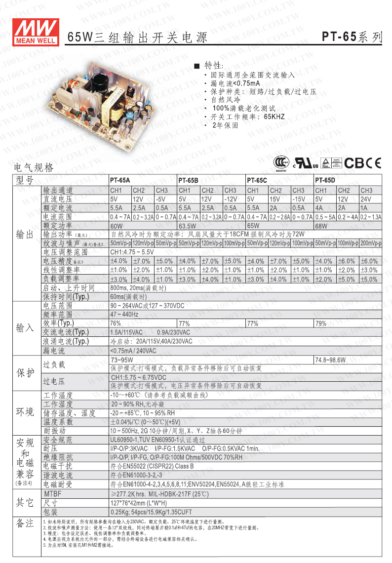 65W三組交換電源供應