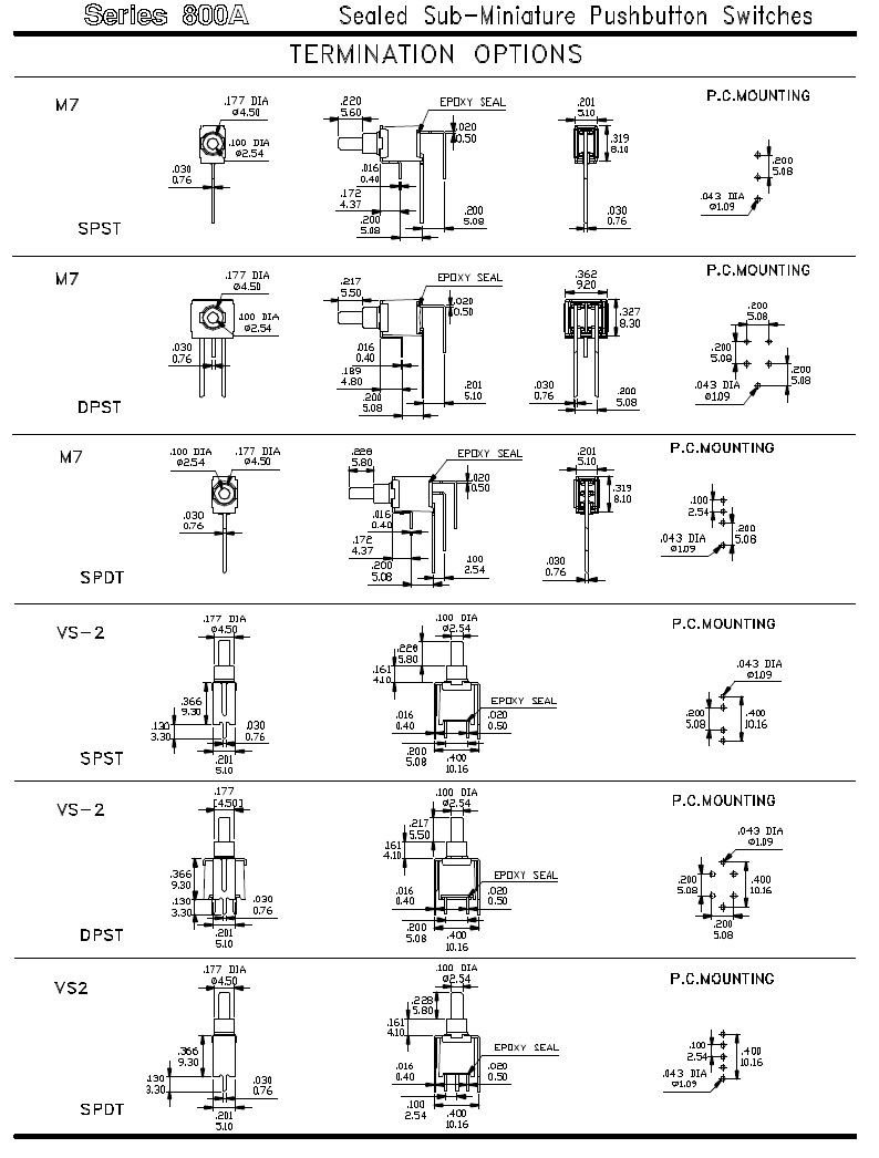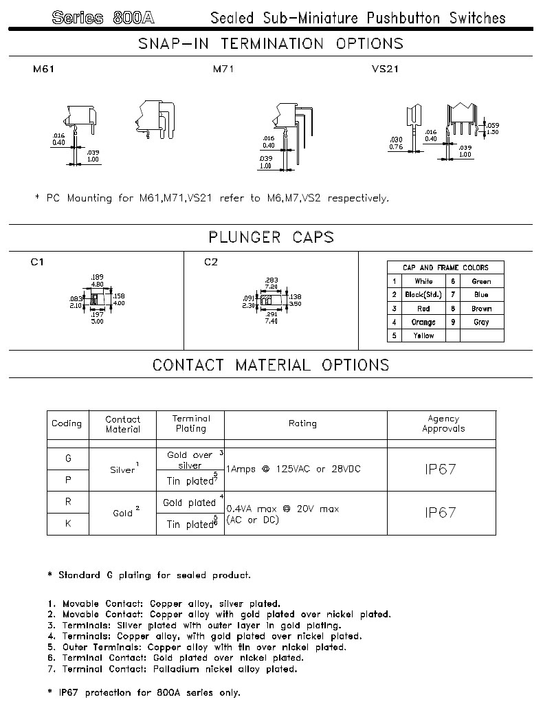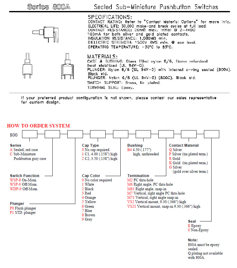 800A 按鍵開關 2P2 防靜電手把 加帽蓋