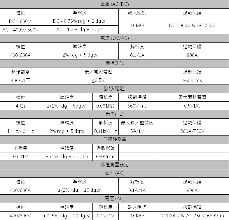 TRUE RMS 交直流鉤錶 DC400A/AC600A