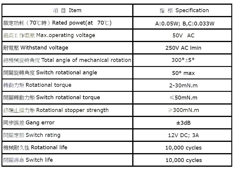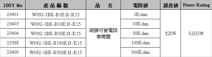 碳膜可變電阻帶開關 100Kohm 無鉛