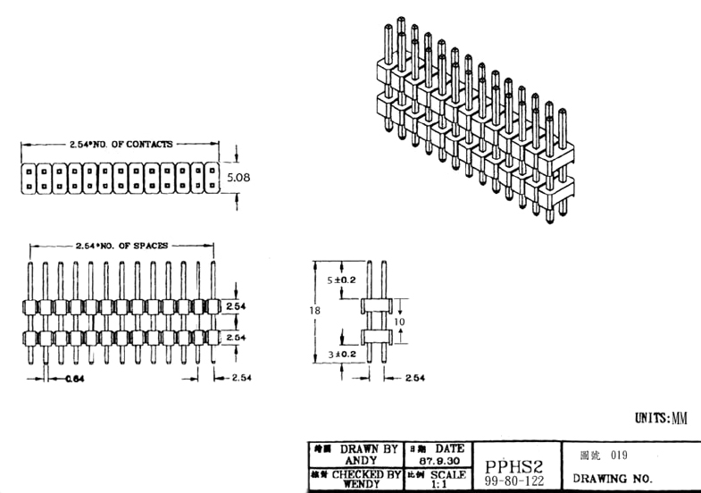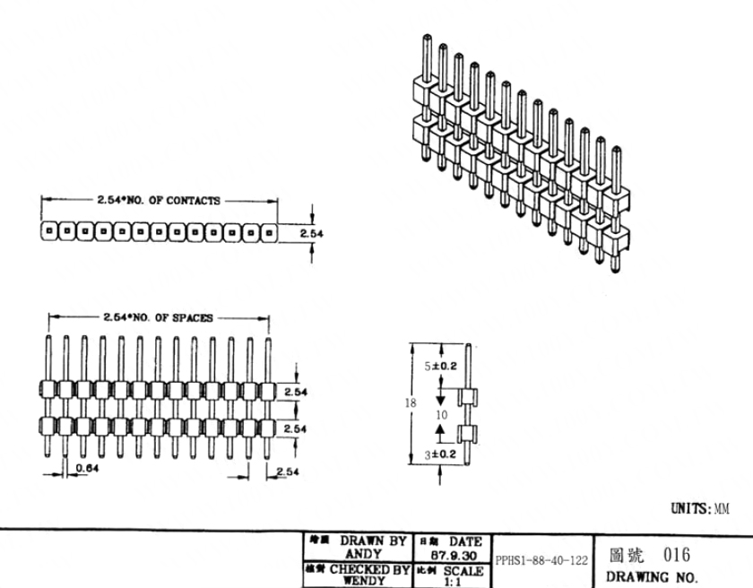 雙層雙排針180°排針【ROHS】