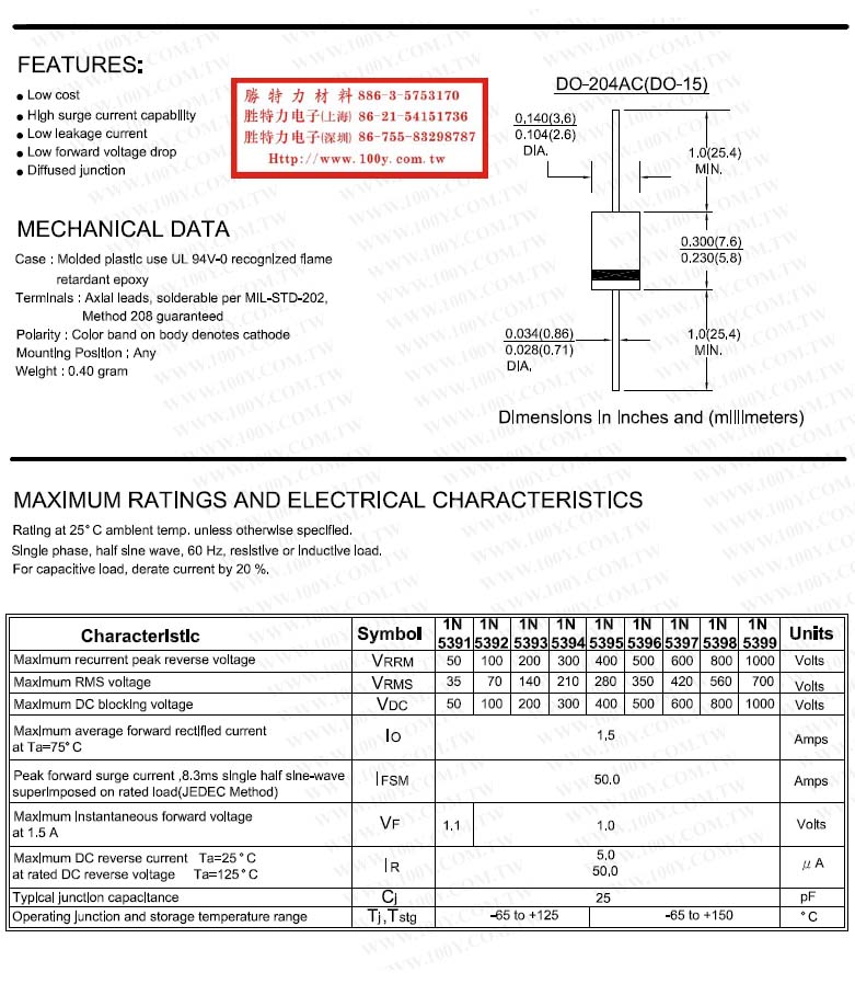 1N5391 THRU 1N5399 SILICON RECTIFIERS