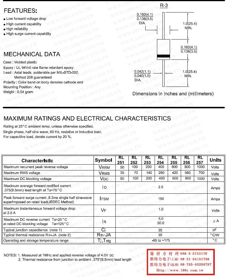 RL251 THRU RL257 SILICON RECTIFIERS