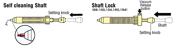 自清除軸:按下自清除軸頭,自動清除軸從噴嘴伸出,清除噴嘴中殘留焊錫。。