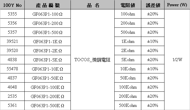 微調電阻200Kohm 250°±10° 1/2W【ROHS】