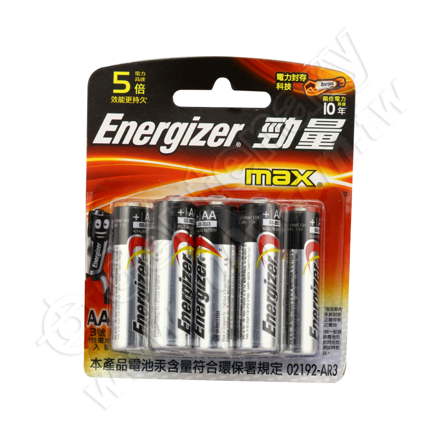 3號(AA)鹼性電池採用獨家電力封存科技,可減緩電池在保存期間內電力自然流失的速度。