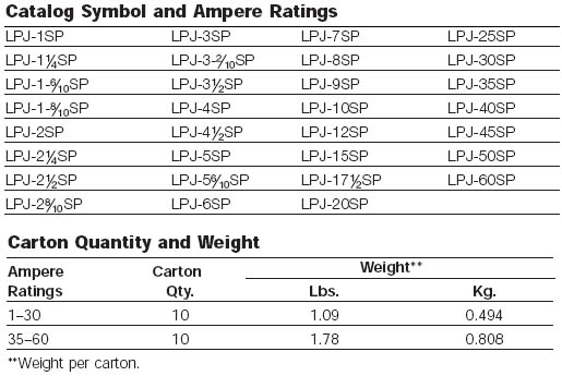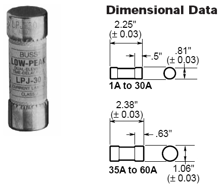 • Unique dimensions assure that another class of fuse with a lesser voltage rating, interrupting rating or current-Iimiting ability cannot be substituted.