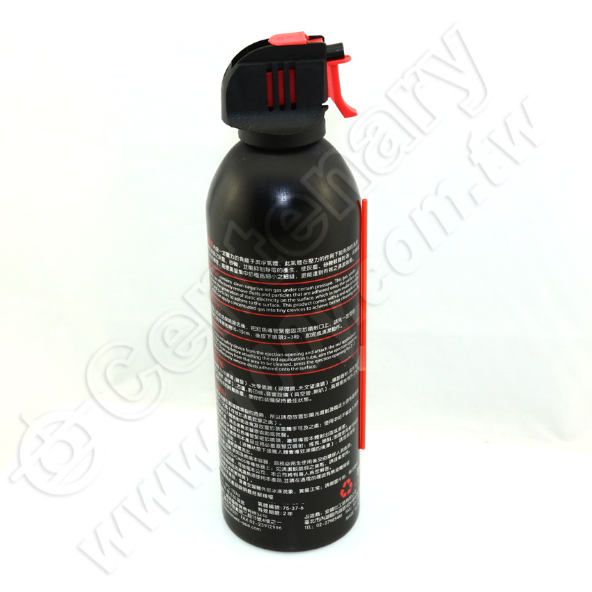 內含一定壓力的負離子的潔淨氣體,此氣體在一定壓力的作用下能有效的清潔相機的機身、片室、捲片軸及各式的鏡頭(蛇腹、marco、及變焦)上的灰塵、沙礫並能抑制靜電的產生,使灰塵、沙礫較難附著。其附上紅色導管,能使氣量集中於極微細小的細縫,更能保障您的拍攝品質,能讓您的裝備日日如新。