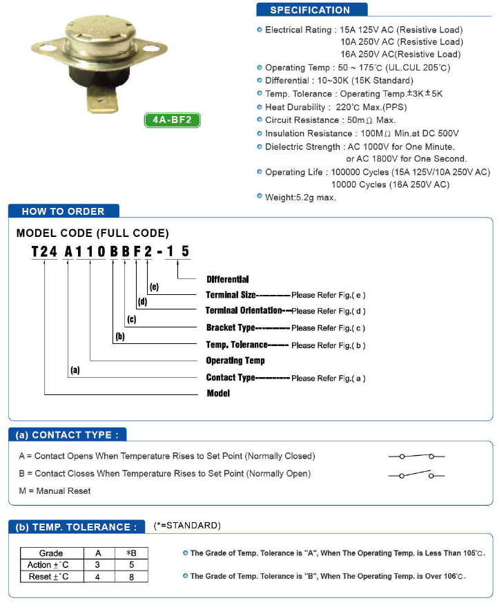 105(+2/-3)℃ | -5(±15)℃ | M Type 手動復歸型 |