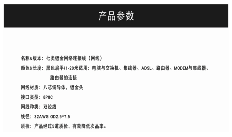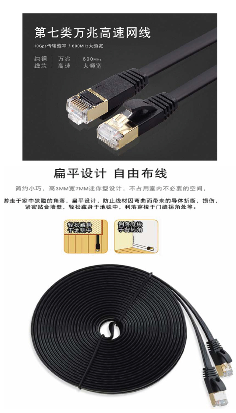 Cat.7 超千兆網路線 (扁平網線) 黑色 3M