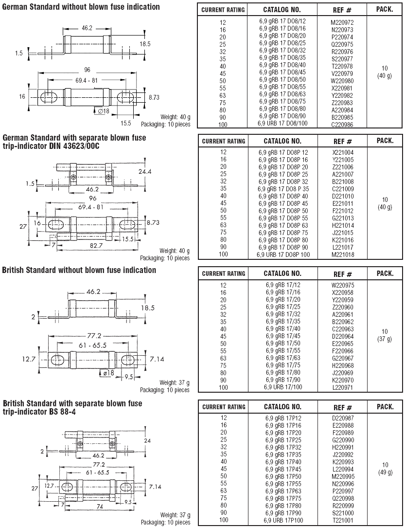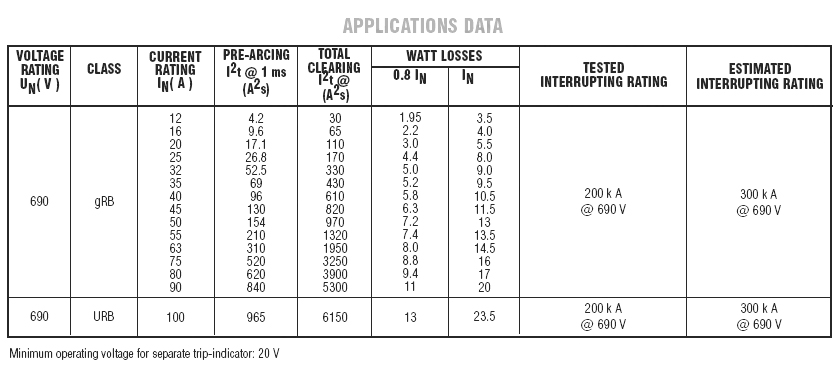 ●gR Class [Current rating 12 to 90A] as per VDE 636-23