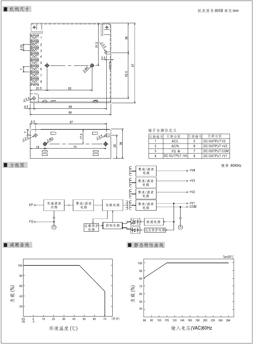 5V/6.0,15V/1.5A, -5V/1.0A, -15 V/1.0A
