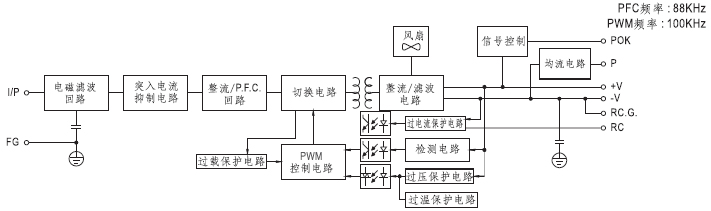 開關工作頻率:PFC: 88KHz / PWM: 100KHz
