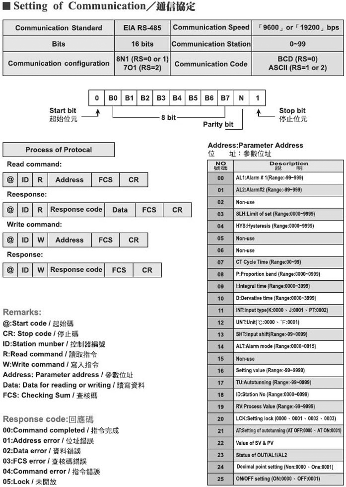 ●具有RS-485通訊連線機種
