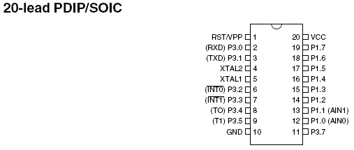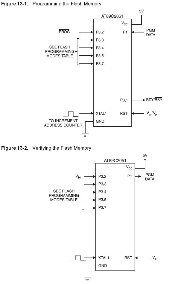 Internal Address Counter: The AT89C2051 contains an internal PEROM address counter which is always reset to 000H on the rising edge of RST and is advanced by applying a positive going pulse to pin XTAL1.