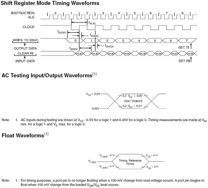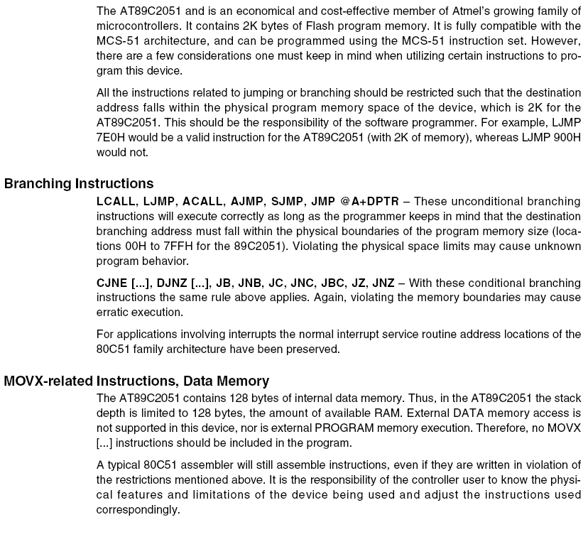 It should be noted that when idle is terminated by a hardware reset, the device normally resumes program execution, from where it left off, up to two machine cycles before the internal reset algorithm takes control. On-chip hardware inhibits access to internal RAM in this event, but access to the port pins is not inhibited. To eliminate the possibility of an unexpected write to a port pin when Idle is terminated by reset, the instruction following the one that invokes Idle should not be one that writes to a port pin or to external memory.