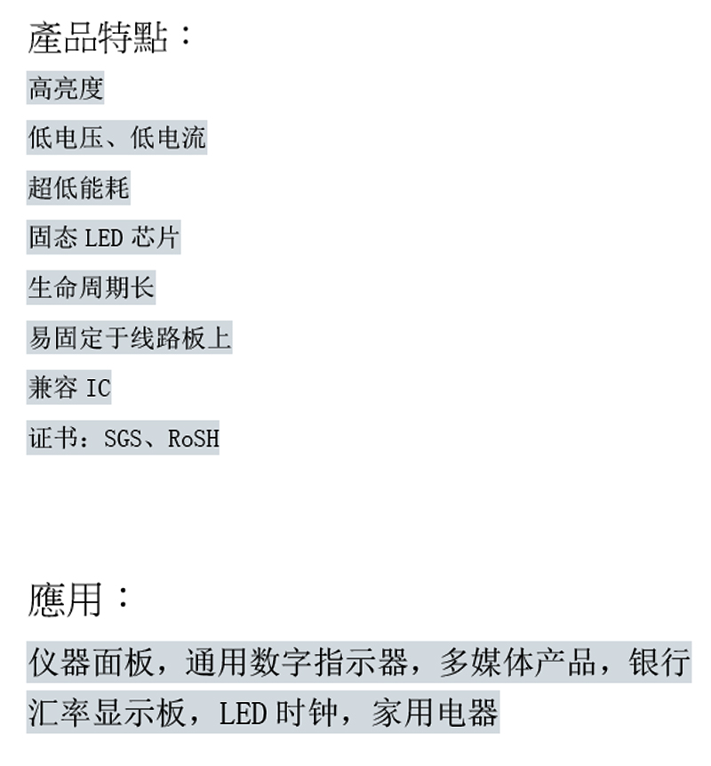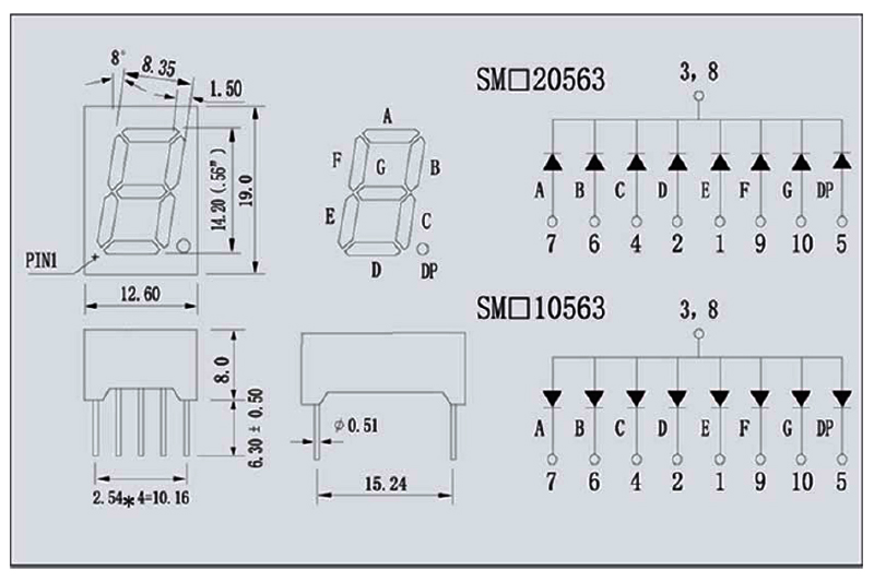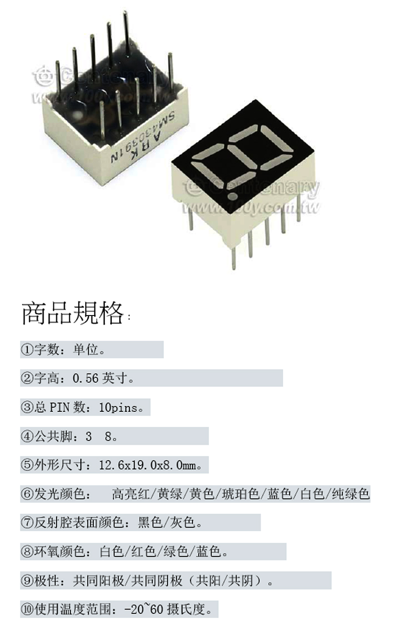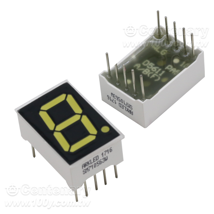 0.56" 共陽高亮白色 1位數碼管 黑底白字