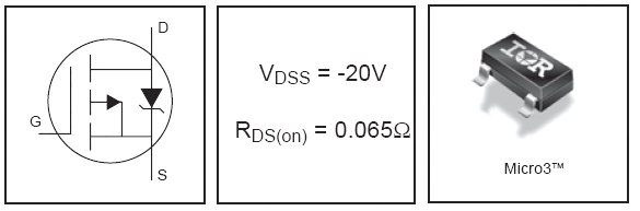 A thermally enhanced large pad leadframe has been incorporated into the standard SOT-23 package to produce a HEXFET Power MOSFET with the industry’s smallest footprint. This package, dubbed the Micro3™, is ideal for applications where printed circuit board space is at a premium. The low profile (<1.1mm) of the Micro3 allows it to fit easily into extremely thin application environments such as portable electronics and PCMCIA cards. The thermal resistance and power dissipation are the best available.
