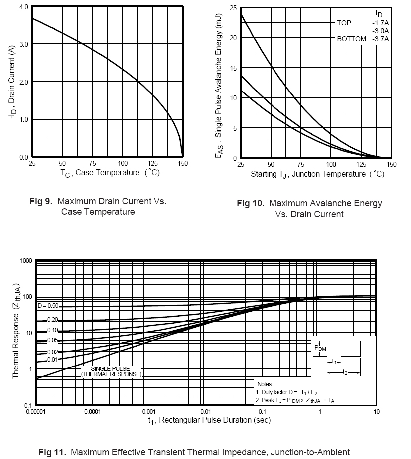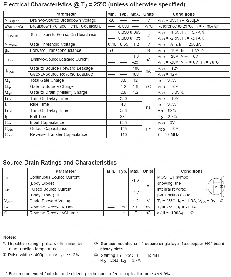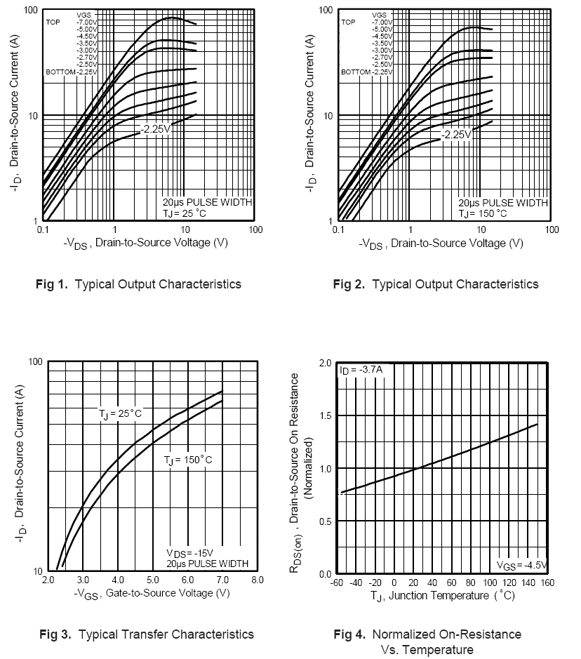 These P-Channel MOSFETs from International Rectifier utilize advanced processing techniques to achieve extremely low onresistance per silicon area. This benefit, combined with the fast switching speed and ruggedized device design that HEXFET power MOSFETs are well known for, provides the designer with an extremely efficient and reliable device for use in battery and load management.