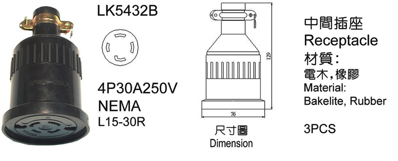 LK5432引掛橡膠中間插座