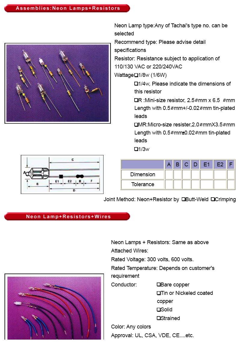 出線式迷你霓虹燈泡