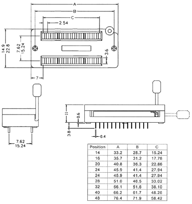 ZIP DIP SOCKET 2.54mm(0.100")/鎖緊雙列