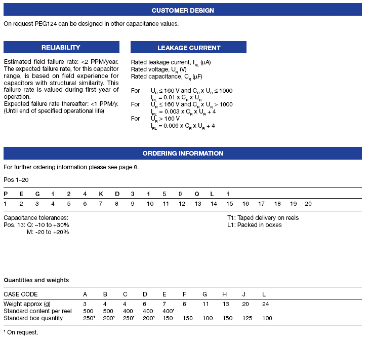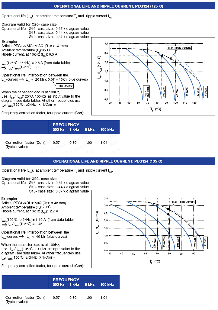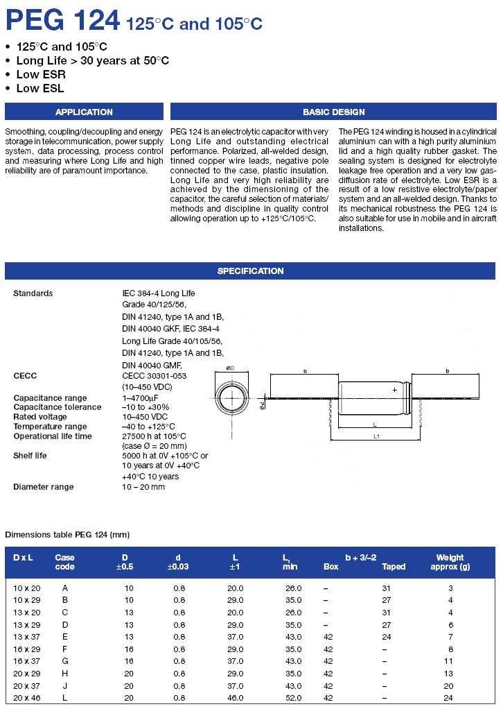 | 63248 | PEG124ER3100M | 100uF | -10~+30% | 10VDC | 125°C | 8×18mm |