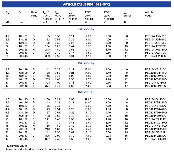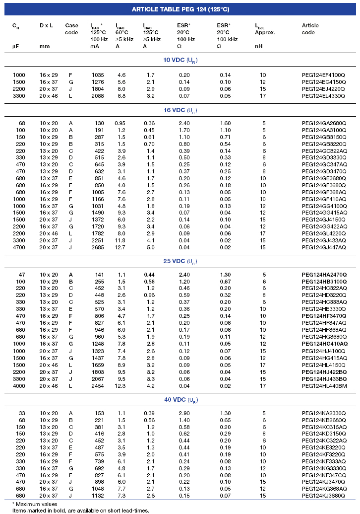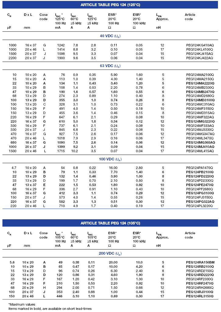 | 63244 | PEG124PD310AQ | 100uF | 100VDC | 16×37mm | ||