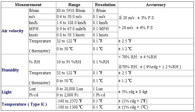 ■風速 0.4~30.0米/秒.±3% (溫度0~50.0℃)