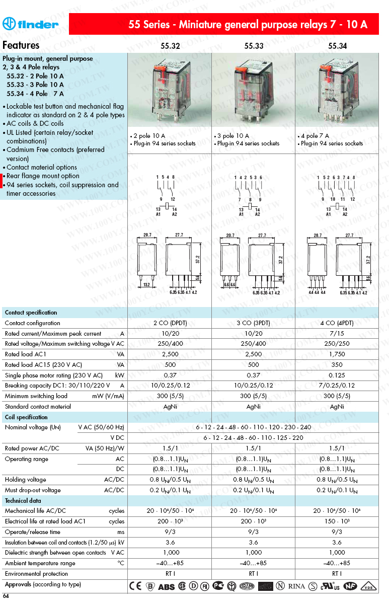 PCB繼電器 DPDT, 24VDC/10A, Socket